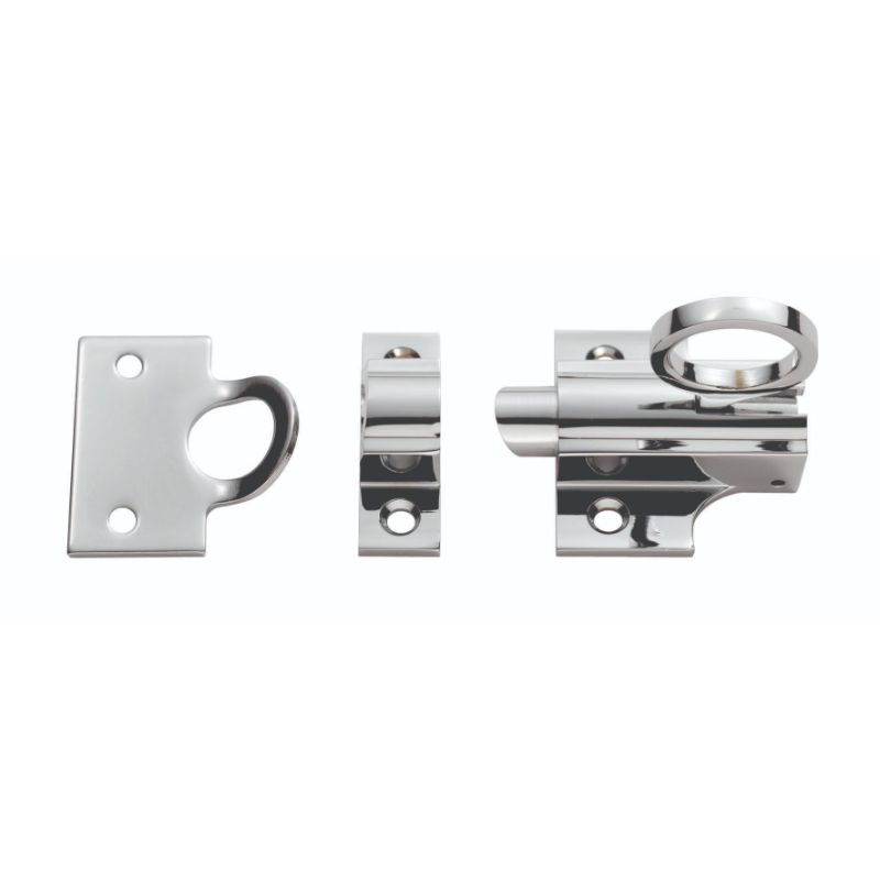 A sprung fanlight catch, mainly for use on bottom hung casement windows. The sprung loop allows high level windows to be reached with a hook-on-a-pole. Can also be used on doors, cabinets etc. Supplied with fixings, flat plate and receiver staple. Comes with a 10 year mechanical guarantee.